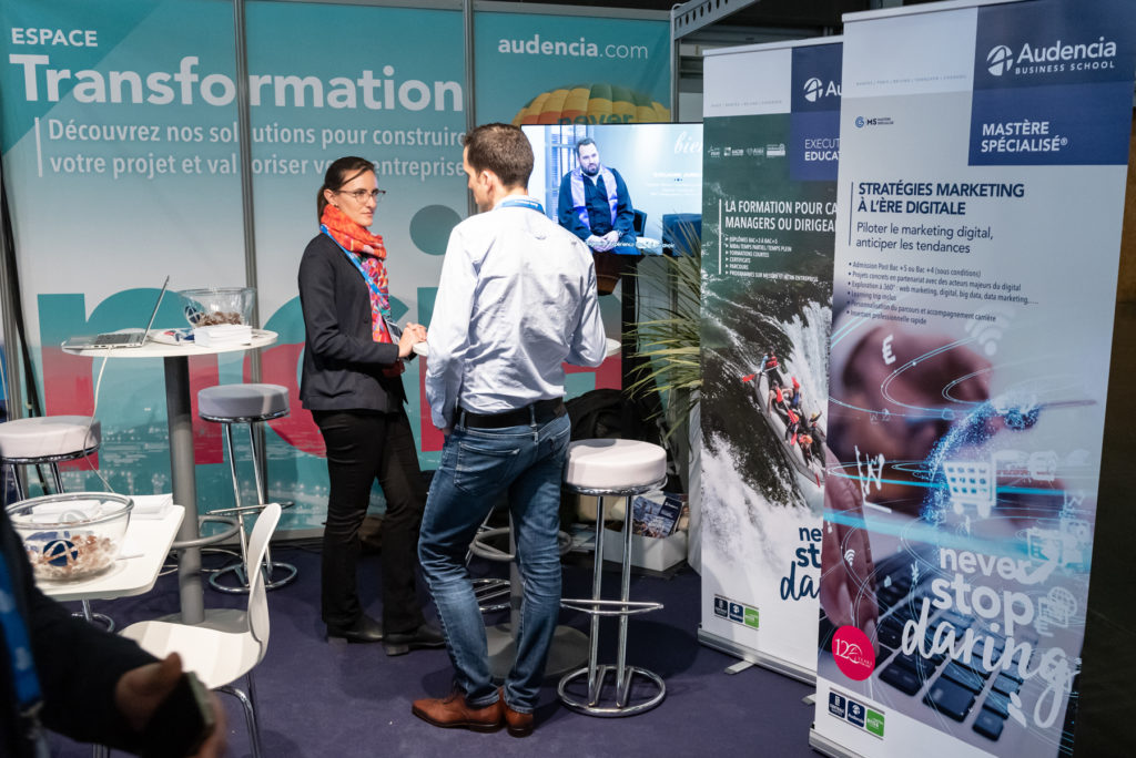 Photos d’illustration du stand Audencia lors de l’événement Digital Change à Nantes. Digital Change est l’événement du Grand Ouest consacré à la transformation numérique des entreprises et de l’économie.