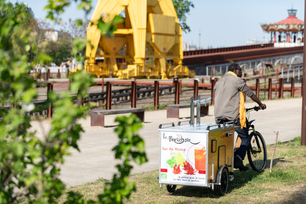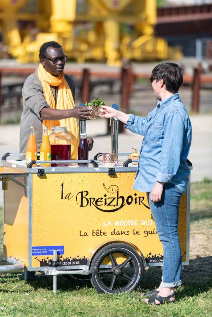 Reportage photos d’illustration pour La Breizhoir, fondée en 2019 à Nantes par El Hadji Fall issu du monde marketing qui s’est converti sur les techniques ancestrales de la fermentation. La Breizhoir est un vélo bar à jus itinérant de prestations de cocktails et de jus de fruits fermentés naturellement sur vélo.